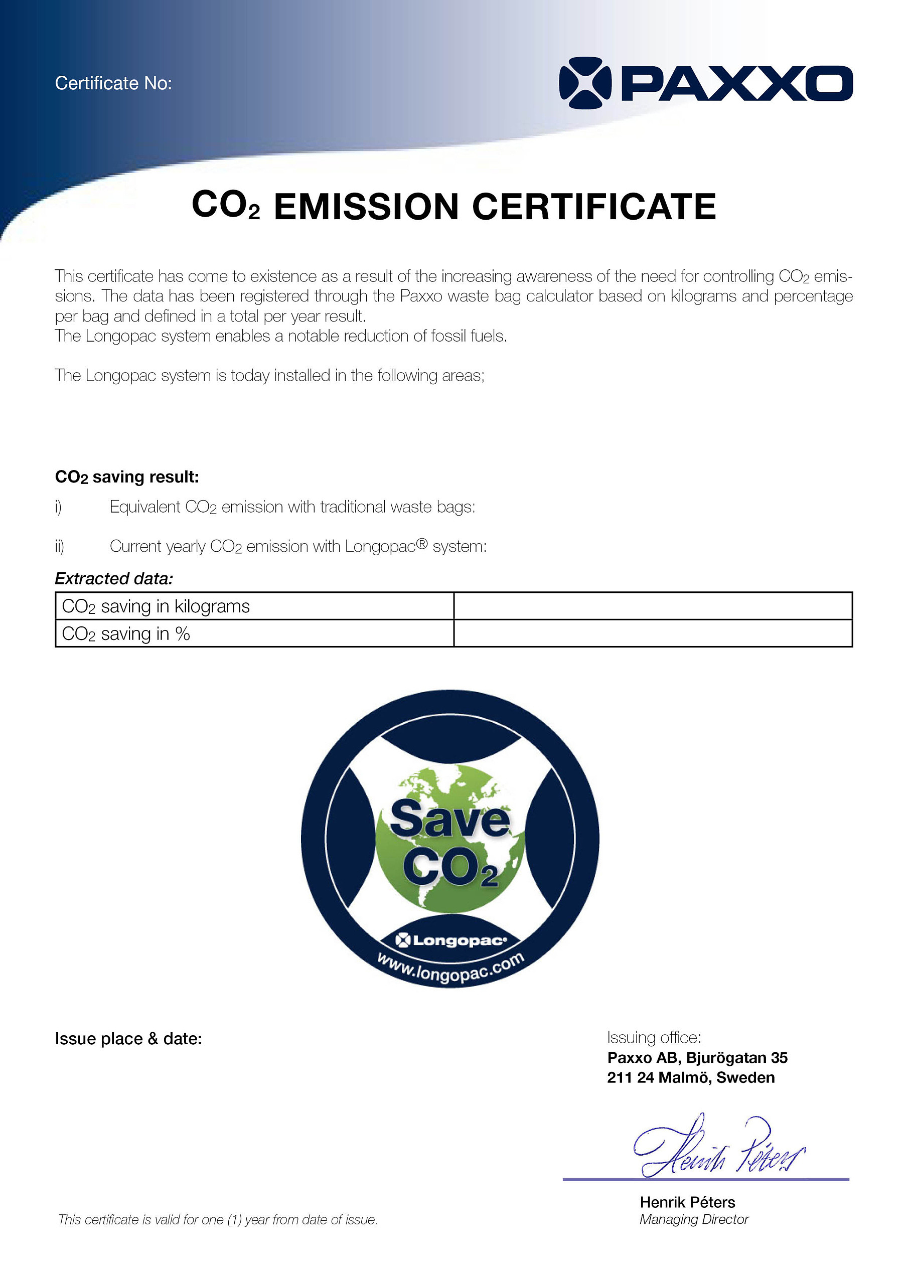 That is why Paxxo created the Longopac Academy, where we educate our distributors on how to achieve optimal use of the Longopac system. In addition, we issue a CO₂ certificate to all our end users, based on calculations showing the savings in both plastic and oil consumption.